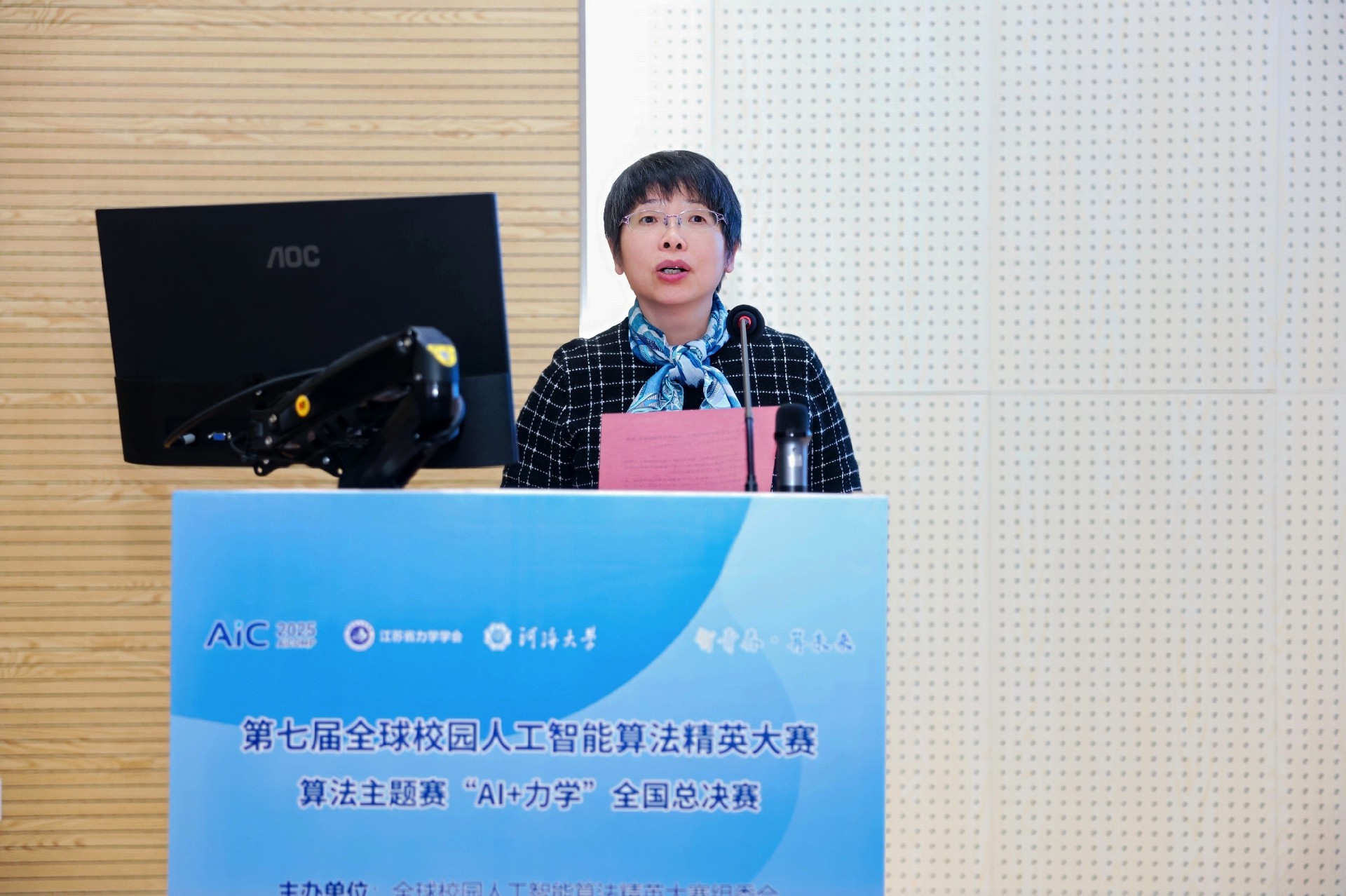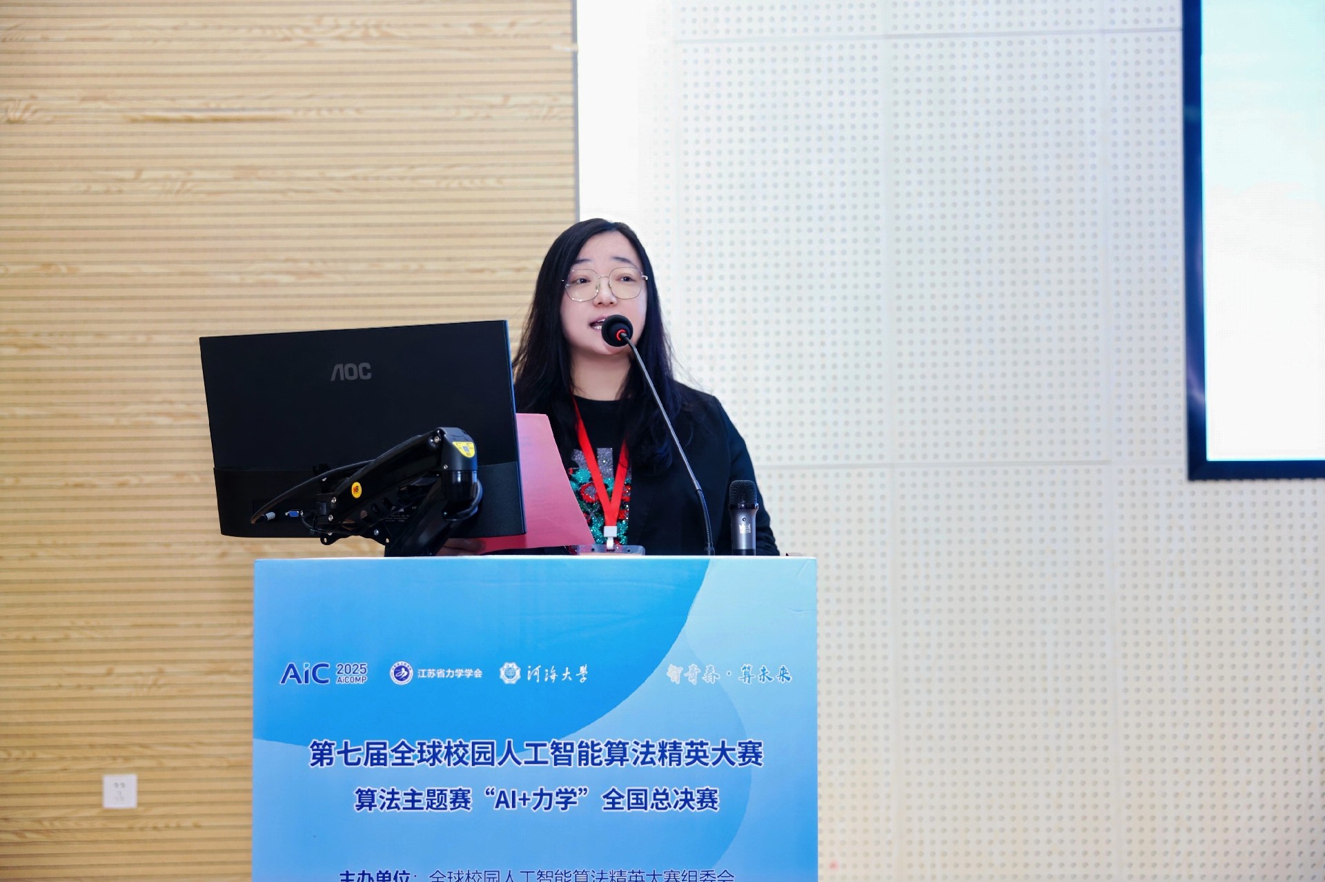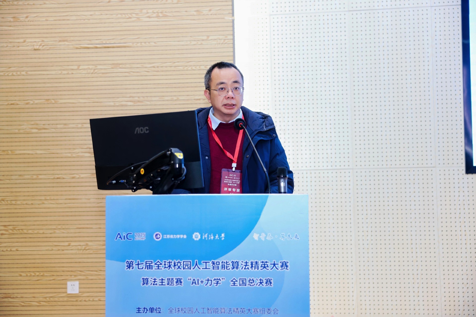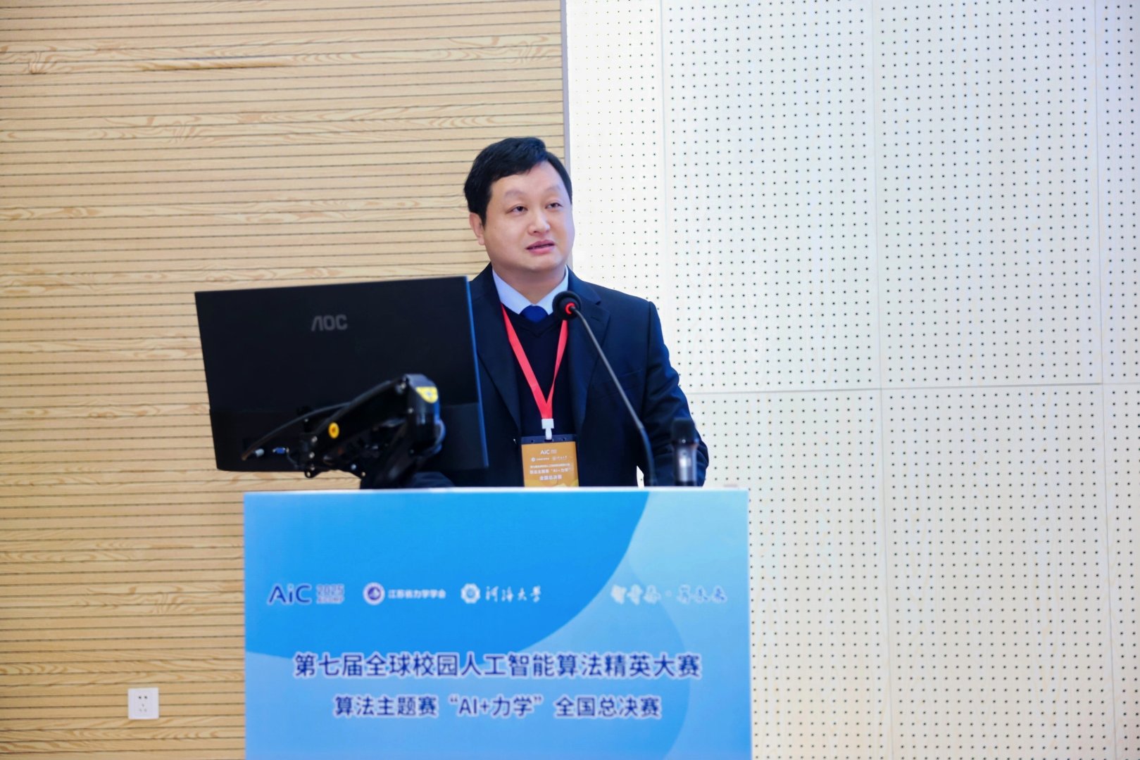 全国总决赛分为线上半决赛与线下总决赛两个阶段,其中线下总决赛由河海大学承办,于12月21日在河海大学江宁校区举行。江苏省人工智能学会副理事长、金陵科技学院副校长张燕,江苏省力学学会副理事长、河海大学力学与工程科学学院院长雷冬,全球校园人工智能算法精英大赛组委会秘书长房伟,河海大学校团委书记、创新创业学院院长朱乔,河海大学力学与工程科学学院党委副书记武晓楠,江苏省力学学会秘书长张姝姝等出席活动。开幕式由全球校园人工智能算法精英大赛组委会执行主席、河海大学工程力学系主任傅卓佳主持。