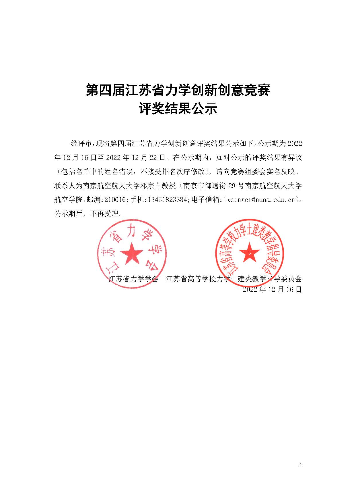 第四届江苏省力学创新创意竞赛评奖结果公示