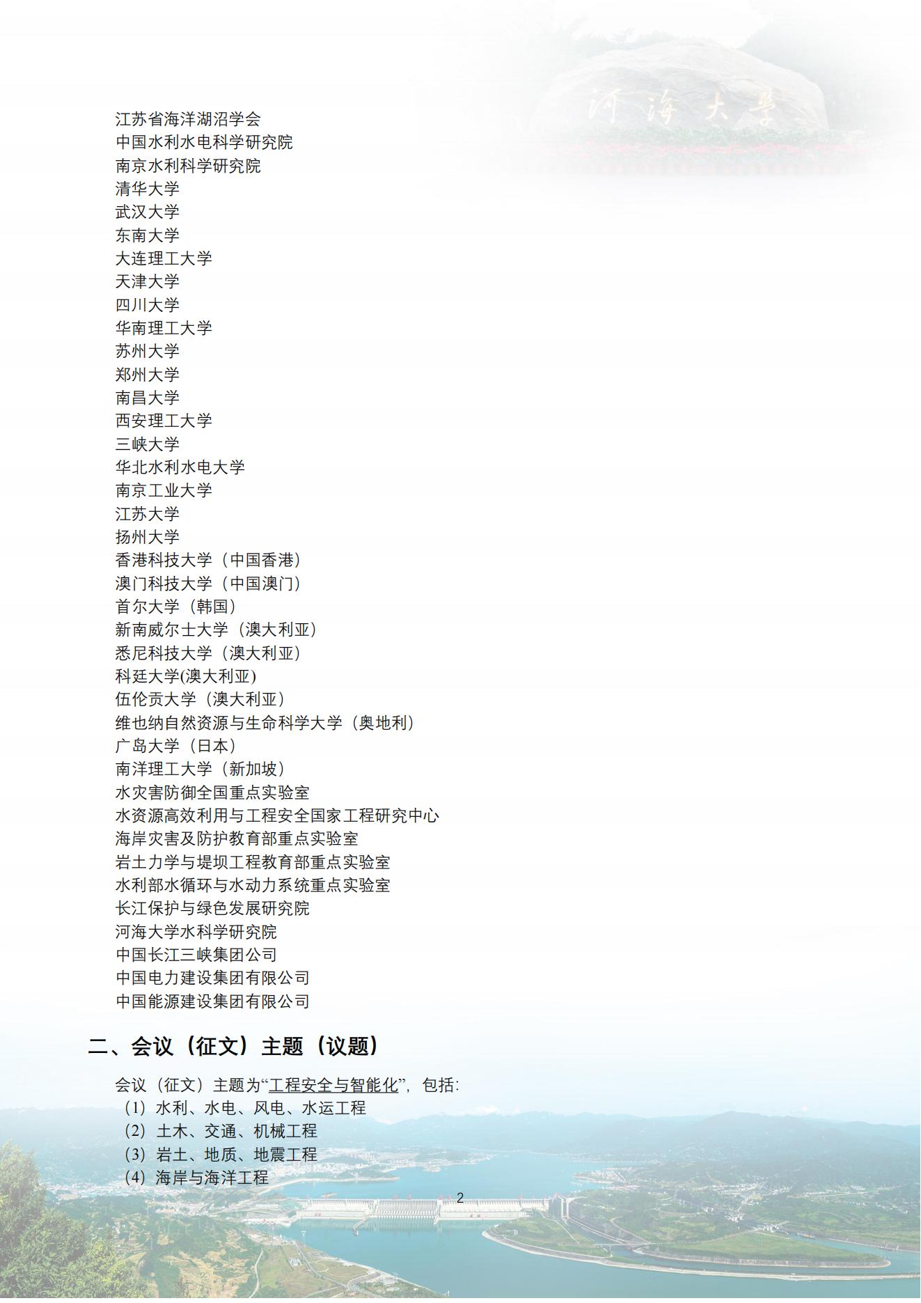第十一届水利、土木工程国际学术会议暨工程安全与智能化论坛(第一轮通知)
