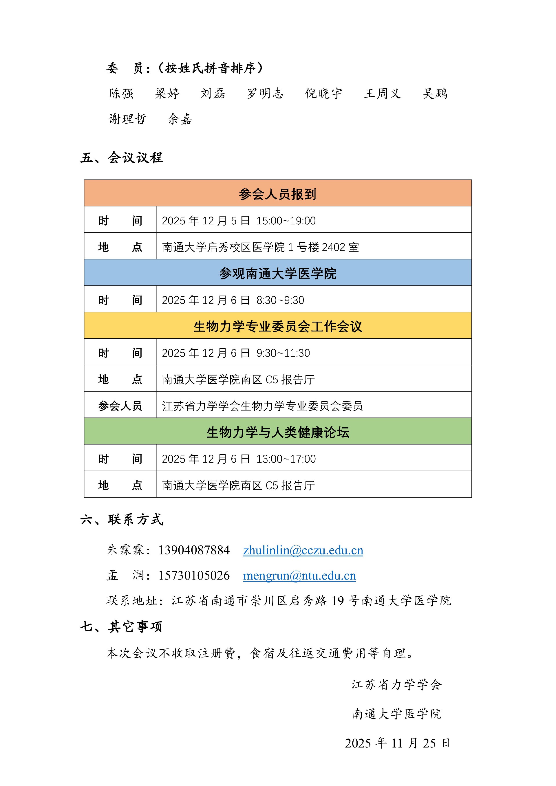 第四届“生物力学与人类健康”论坛暨2025年度江苏省力学学会生物力学专业委员会年会邀请函
