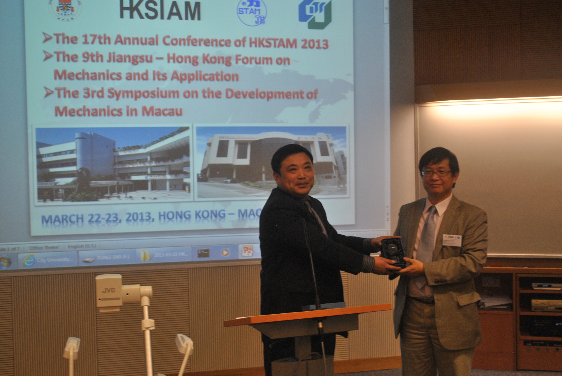 3月23日在澳门大学图书馆的报告厅进行了2个大会报告和50个分会场报告,就力学及其工程应用的各方面进行了广泛的交流,江苏省力学学会的18名代表都对自己的研究成果进行了学术报告。有来自江苏、香港、澳门约50多名代表参加了本次苏港论坛。