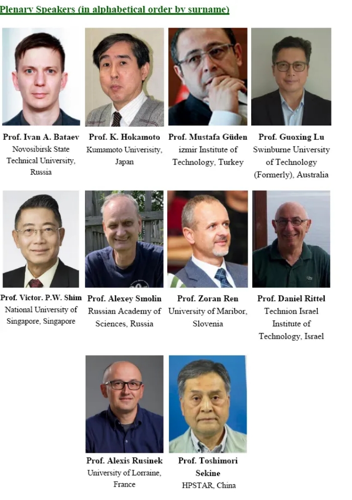 全会报告嘉宾包括美国工程院外籍院士、新加坡国家科学院院士、新加坡工程院院士、新加坡国立大学刘斌教授,中国科学院外籍院士、美国科学院院士、美国工程院院士、英国皇家学会院士、清华大学高华健教授,美国工程院院士、中国工程院外籍院士、美国德克萨斯农工大学J. N. Reddy教授,清华大学冯西桥教授,中国科学院外籍院士、美国科学院院士、美国工程院院士、英国皇家学会外籍院士、美国西北大学黄永刚教授,新加坡工程院院士、新加坡科技设计大学Chua Chee Kai教授,加拿大皇家科学院院士、加拿大工程院院士、加拿大国立科学研究院Federico Rosei教授,中国科学院院士、大连理工大学郭旭教授,以及哈尔滨工程大学张阿漫教授。中国工程院院士、深圳大学陈湘生教授,李少凡教授,高华健教授以及新加坡南洋理工大学Paulo J. D. S. Bartolo教授主持了全会报告。