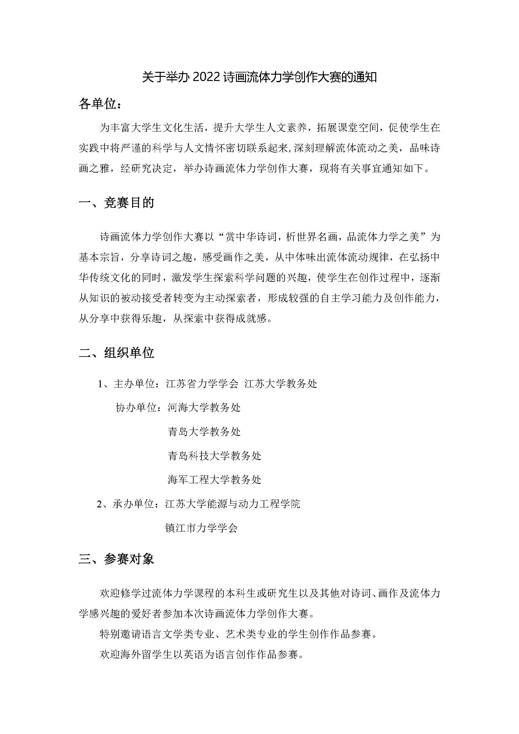 关于举办2022诗画流体力学创作大赛的通知